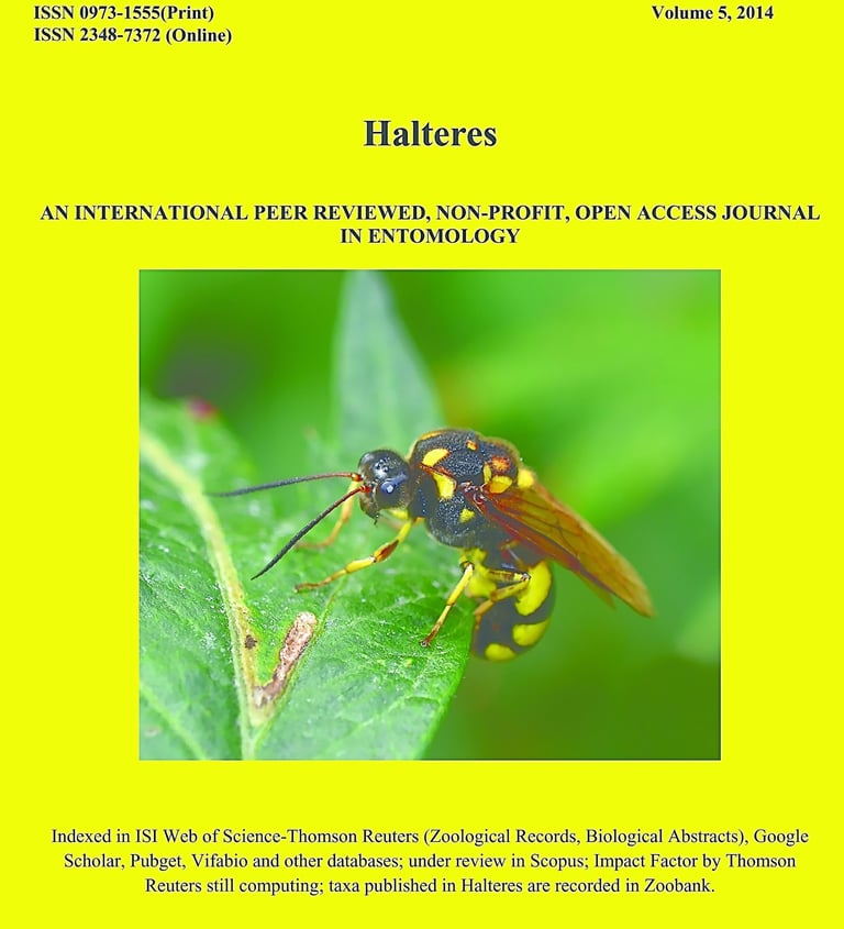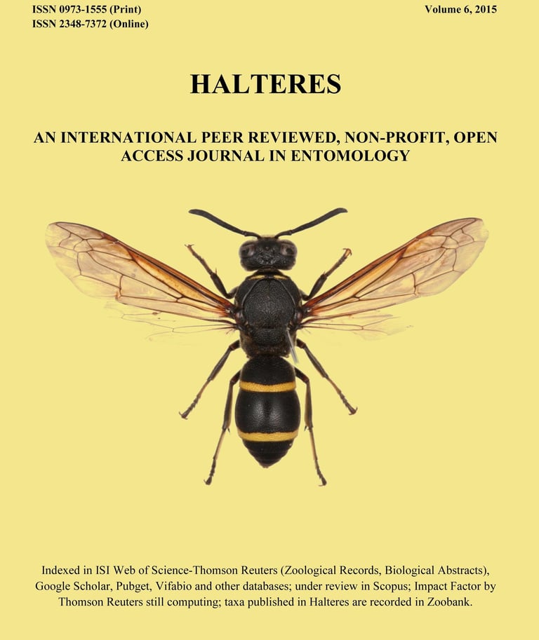 HALTERES (ISSN 0973-1555 Print; ISSN 2348-7372 Online) is an International, non-profit, peer reviewed open access journal, with no article processing charges. The journal provides a platform to biologists who are work in the field of Insect taxonomy, biodiversity, biology, evolution, biogeography, ecology, ethology, genetics, physiology and conservation. We encourage submissions on natural history observations, species range extension, checklists, new species records, taxonomic descriptions, taxonomic reviews and reports, phylogenetic relationships and zoogeographical patterns of species. The journal also offers space for short communications, opinion pieces, letters, commentaries and to budding entomologists/environmentalists/citizens scientists to publish their research.